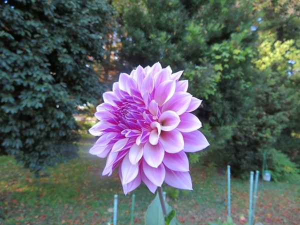 皇帝ダリア。学名;Dahlia imperialis. 英名:Tree dahlia. きく科だりあ属。原産地はメキシコ、グアテマラ等。オランダから長崎に移入。多年性草本。草丈3~4m、地中に大きな塊根をつける。開花時期は晩秋、紅紫色の花をつける。モノテルペン系β-Pinene(抗菌活性)等含有。(hy)