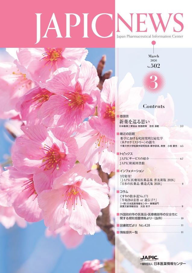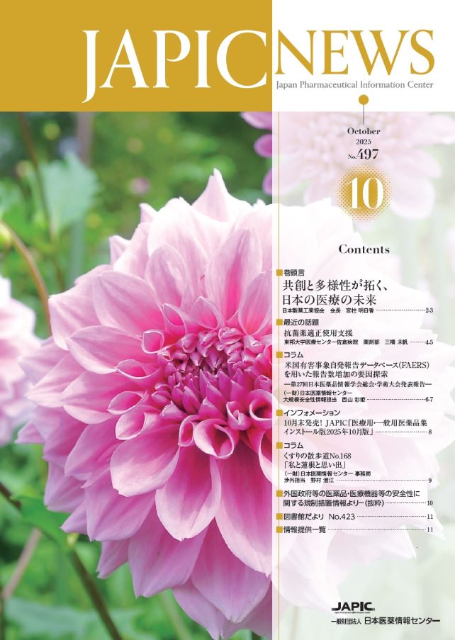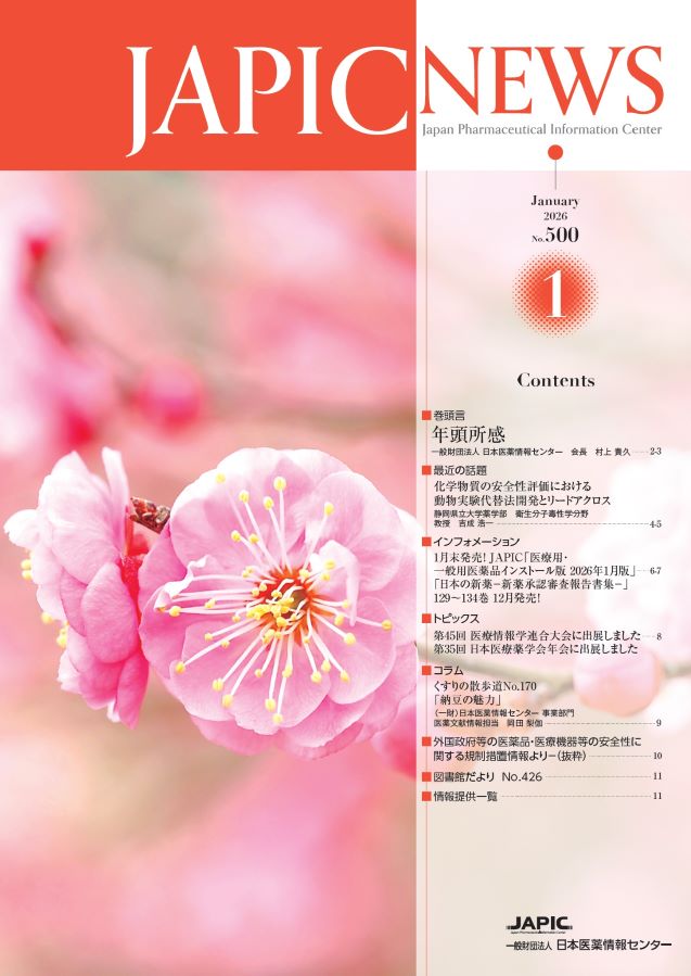 JAPIC NEWS(PDF版)最新号がWeb掲載されますと、ご登録のメールアドレスへWeb掲載のお知らせを配信するサービスを2023年11月号(No.474)より、開始いたしました。